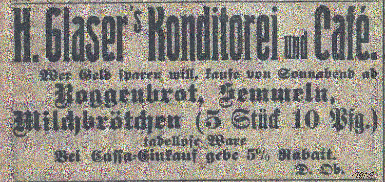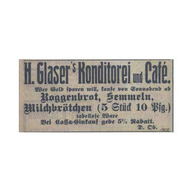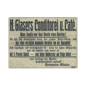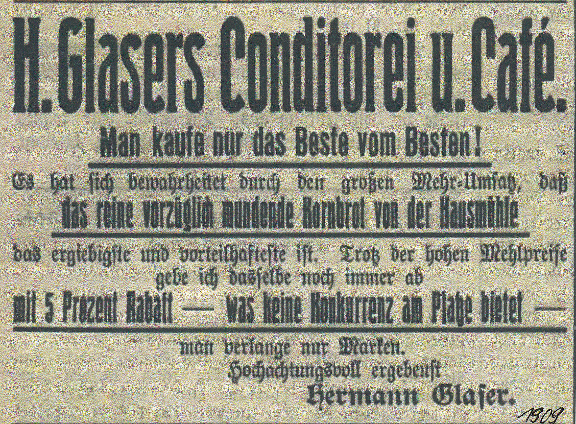 - Lina Glaser (Pächter), Konditorei mit Ausschank von Spirituosen, ab 10.04.1910