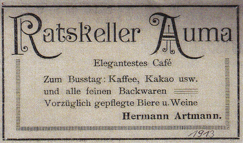 - Hermann Artmann, ab 05.08.1913, Gastwirtschaft der städtischen Ratskellerwirtschaftsgerechtigkeit