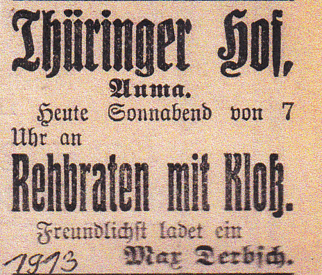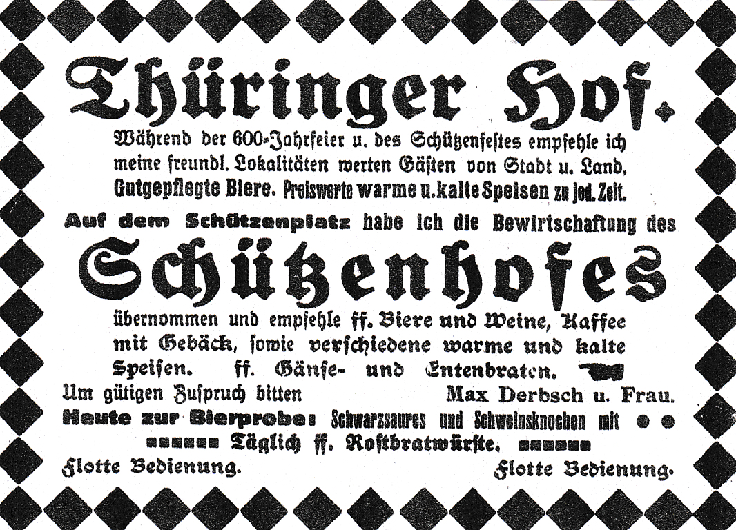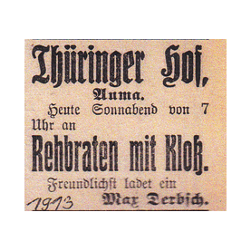 - Max Derbsch (Besitzer), 01.06.1913-30.06.1965 (von 1931-1937 auch Ratskeller, Schankgerechtsname)