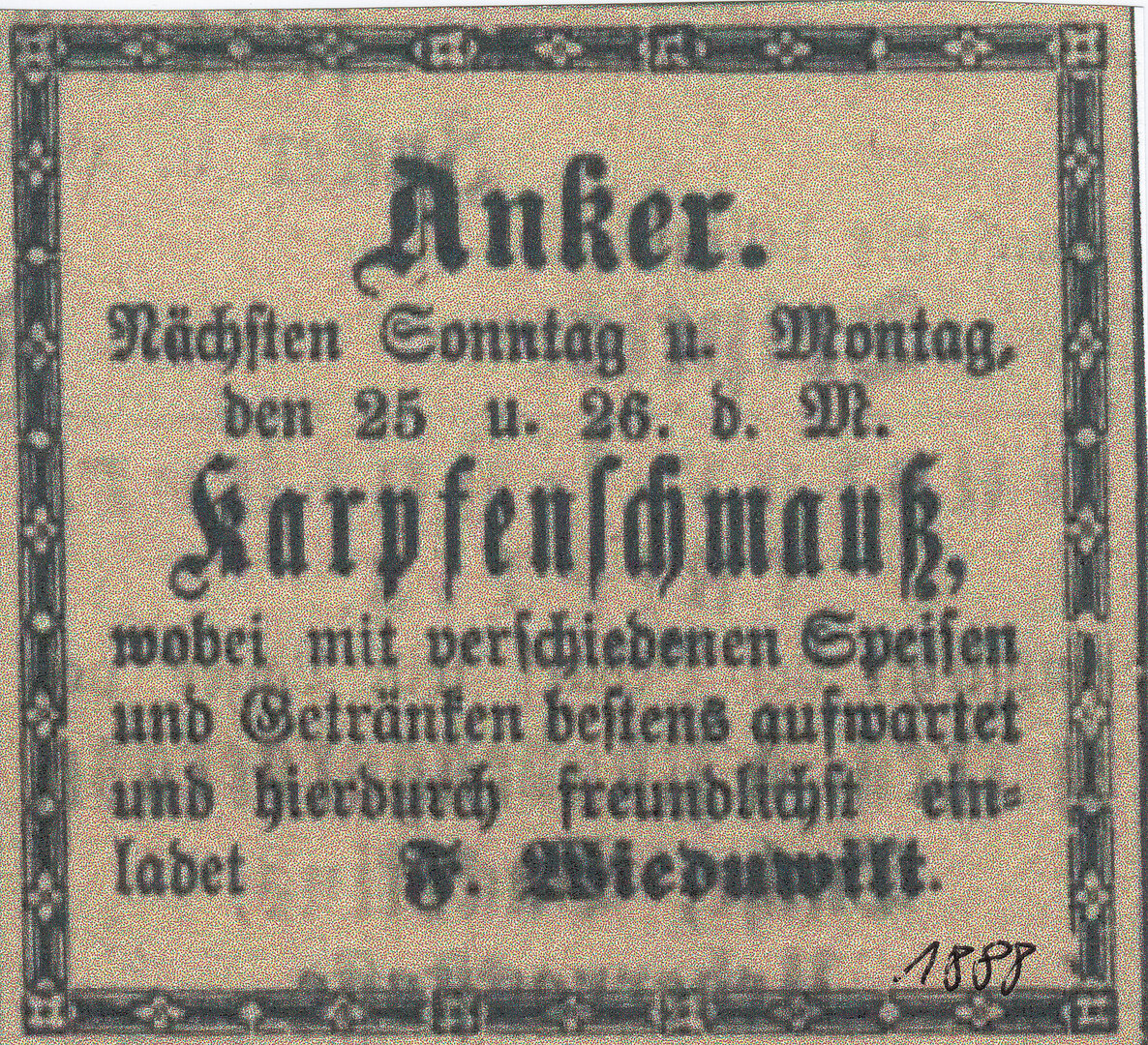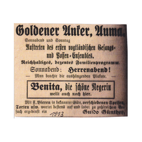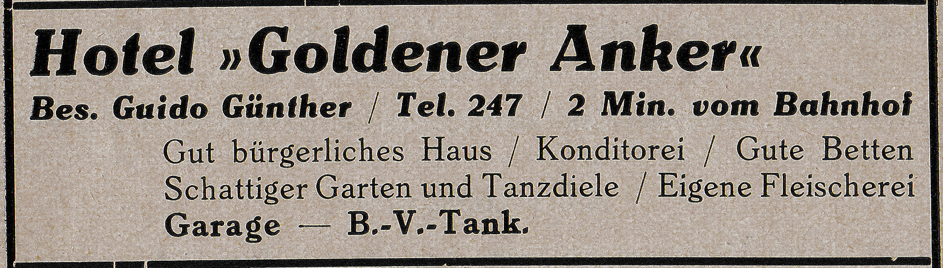 Laut Konzessionsliste der Stadt Auma von 1880 gab es in Auma einen "Anker", auch in einer Anzeige der OTZ von 1888 zu lesen. Es handelt sich dabei nicht um dieses Gebäude.